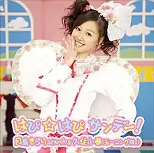 "Happy Happy Sunday!" is the thirteenth ending theme song to Kirarin Revolution and is performed by Koharu Kusumi from Morning Musume, who voices the main character, Kirari Tsukishima.[1] The song was released as the character's sixth single and Kusumi is credited as "Kirari Tsukishima starring Koharu Kusumi (Morning Musume)" (月島きらり starring 久住小春(モーニング娘。)).[2] The song expresses the feelings of a girl before her first date.[3]