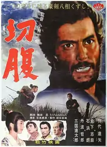 Harakiri (切腹, Seppuku[2], 1962) is a 1962 Japanese jidaigeki film directed by Masaki Kobayashi. The story takes place between 1619 and 1630 during the Edo period and the rule of the Tokugawa shogunate. It tells the story of the rōnin Hanshirō Tsugumo,[3] who requests to commit seppuku (harakiri) within the manor of a local feudal lord, using the opportunity to explain the events that drove him to ask for death before an audience of samurai. The film continues to receive critical acclaim, often considered one of the best samurai pictures ever made.