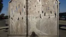The Harbor Gateway Transit Center also houses a free-standing art installation as part of the Los Angeles County Metropolitan Transportation Authority's art program that commissions artists to integrate artworks into its stations for the enjoyment of transit customers.[12] Located on the west side of the platform, Alison Saar's Paraje is a 10-foot-high (3.0 m) by 10-foot-wide (3.0 m) cast stainless steel sculpture depicts a willow tree on the west side and on the east side a willow spirit emerges mysteriously from the tree.[13] The artwork was installed on January 28, 2013. The name Paraje is Spanish for a resting place between two destinations and the artwork was inspired by the nearby Gardena Willows Wetlands Preserve.[14]