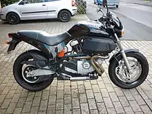 Buell started with water-cooled two-stroke square-fours and ended with a water cooled four-stroke V-Twin, but the vast majority of their bikes used reworked 883 and 1200 Sportster engines. With Buell-designed heads, barrels, and in 1999 fuel injection, these all led to an increase in horsepower. They also had rubber mounting and a fan to cool the rear cylinder.[20]