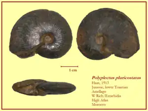 In 1981 a new subfamily has been erected and named Polyplectinae, which is sometimes considered to be a synonym of Harpoceratinae,[1] but sometimes it is still used as valid taxa.[7] Following genera are part of this subfamily:[8]