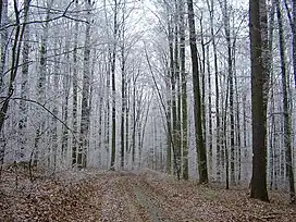 The Harthausen Forest (German: Harthäuser Wald) is a large forested area that – depending on the definition used – is 20 to over 30 km² in area. It lies in the north of Baden-Württemberg between the valleys of the lower reaches of the Jagst and Kocher on a hill ridge which is up to 334 m above sea level (NN). The largest part of the forest lies on the territory of Hardthausen am Kocher and thus in the county of Heilbronn, a smaller part in the east is in Hohenlohekreis.
