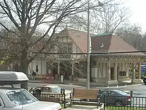 The station building was originally built in 1915 (or 1914 according to the MTA[7]) by the Warren and Wetmore architectural firm for the New York Central Railroad, as a replacement for a smaller wooden depot built by the New York and Harlem Railroad originally known as "Hart's Corner Station."[8] Unlike most Warren & Wetmore-built NYC stations, which were grand cathedral-like structures using Beaux-Arts architecture, the station in particular was strictly of the Tudor Revival style. The station was named after the valley owned by the Harts.[9]: 28
