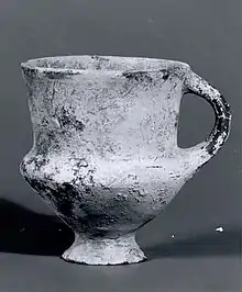 Large quantities of handmade, chaff-tempered pottery were found.[23] This includes 'Dalma plain ware', 'Dalma impressed ware', and 'Dalma red-slipped ware', which was covered with a uniform coat of dark-red paint. There was a variety of shapes.