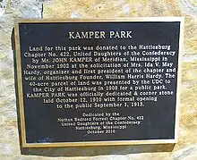 The Hattiesburg Zoo (sometimes also called the Kamper Park Zoo) is a small 12-acre (4.9 ha) zoo located within Kamper Park in Hattiesburg, Mississippi, United States. The zoo is operated by the Hattiesburg Convention Commission. As of 2019, the Commission's executive director was Rick Taylor.[4][5]
