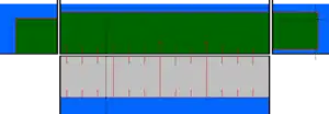 The court for jai alai consists of walls on the front, back and left, and the floor between them. If the ball (called a pelota in Spanish, pilota in Standard Basque) touches the floor outside these walls, it is considered out of bounds. Similarly, there is also a border on the lower 3 feet (0.9 m) of the front wall that is also out of bounds. The ceiling on the court is usually very high, so the ball has a more predictable path. The court is divided by 14 parallel lines going horizontally across the court, with line 1 closest to the front wall and line 14 the back wall. In doubles, each team consists of a frontcourt player and a backcourt player. The game begins when the frontcourt player of the first team serves the ball to the second team. The winner of each point stays on the court to meet the next team in rotation. Losers go to the end of the line to await another turn on the court. The first team to score 7 points (or 9 in Superfecta games) wins. The next highest scores are awarded "place" (second) and "show" (third) positions, respectively. Playoffs decide tied scores.
