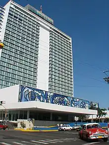 The Havana Conference of 1946 was a historic meeting of United States Mafia and Cosa Nostra leaders in Havana, Cuba.[76] Supposedly arranged by Charles "Lucky" Luciano, the conference was held to discuss important mob policies, rules, and business interests. The Havana Conference was attended by delegations representing crime families throughout the United States.[77] The conference was held during the week of December 22, at the Hotel Nacional.[78] The Havana Conference is considered to have been the most important mob summit since the Atlantic City Conference of 1929. Decisions made in Havana resonated throughout US crime families during the ensuing decades. Havana achieved the title of being the Latin American city with the biggest middle-class population per capita, simultaneously accompanied by gambling and corruption where gangsters and stars were known to mix socially. During this era, Havana was generally producing more revenue than Las Vegas, Nevada, whose boom as a tourist destination began only after Havana's casinos closed in 1959. In 1958, about 300,000 American tourists visited the city.[79]