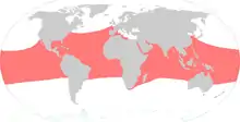 Hawksbill sea turtles have a wide range, found predominantly in tropical reefs of the Indian, Pacific, and Atlantic Oceans. Of all the sea turtle species, E. imbricata is the one most associated with warm tropical waters. Two significant subpopulations are known, in the Atlantic and Indo-Pacific.[17]
