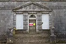 It consists of a 5-bay by 3-bay main block in three storeys with 2-storey wings on either side connected to the main block by single-storey quadrants. The building is constructed of limestone ashlar with slate roofs.[4]
