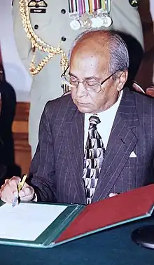 Khairi also served as a member of the Council of Islamic Ideology where as chairman of the Legal Committee he drafted the Women's Protection Bill.[5][6][7] Founder of the private law firm H. Khairi Law Associates, Khairi practiced as an advocate of the Supreme Court of Pakistan before his appointment as a judge of the Sindh High Court.[8][9][10][11]