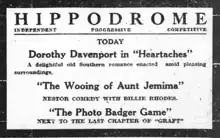 In 1916, advertising money spent on short films was minimal compared to feature films. A brief synopsis was the norm. Short films were shown in conjunction with other short films to create a "diversified program." In this case, a newspaper ad showed Heartaches playing along with two other films. The other films are: