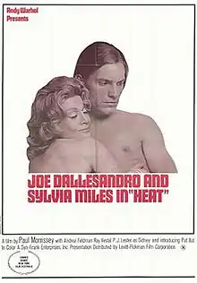 Heat is a 1972 American comedy drama film written and directed by Paul Morrissey, produced by Andy Warhol, and starring Joe Dallesandro, Sylvia Miles and Andrea Feldman. The film was conceived by Warhol as a parody of the 1950 film Sunset Boulevard. It is the final installment of the "Paul Morrissey Trilogy" produced by Warhol, following Flesh (1968) and Trash (1970).