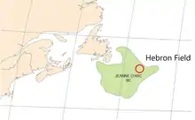 Hebron Oil Field, located off the coast of Newfoundland, is the fourth field to come on to production in the Jeanne d'Arc Basin. Discovered in 1981 and put online in 2017, the Hebron field is estimated to contain over 700 million barrels of producible hydrocarbons. The field is contained within a fault-bounded Mesozoic rift basin called the Jeanne d'Arc Basin.