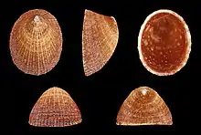 | Five views of a shell of Helcion pectunculus (Gmelin, 1791) | |