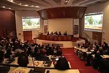 Thessaloniki International Book Fair (TBF) was established in 2004 by EKEVI and since 2014 is under the aegis of HFC. The International Book Fair attracts every year more than 400 publishers, delegations from 30 countries, 65.000 visitors and take place 200 cultural events.[11] Through TBF the Hellenic Foundation for Culture participates in International Book Fairs abroad such as in Frankfurt, in Istanbul, in Kyiv and in Belgrade.[12][13][14][15]