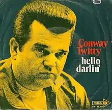 "Hello Darlin'" is a song written and recorded by American country music artist Conway Twitty. It was released in March 1970 as the first single and title track from the album Hello Darlin. The song was Twitty's fourth No. 1 song on the Billboard magazine Hot Country Singles chart.[1] The song spent four weeks atop the Billboard Hot Country Singles chart that summer, and was named the No. 1 song of 1970. Aside from being Twitty's standard concert opener, the song became a country standard as well as his signature song. When performing with Loretta Lynn, Twitty would frequently sing the song directly to Loretta. Twitty's recording was added to the Grammy Hall of Fame in 1999.[2]