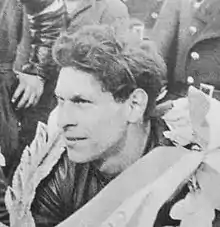 Helmut Fath wearing the race winner's garland