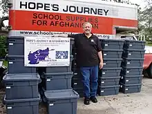 The school supplies have been collected during first part of Hope's Journey in United States by Cary Ragsdale, director of Hope's Journey Organization, Beau Moore, his closest friend, and tens of school children and teachers in United States for supporting Afghanistan school children.