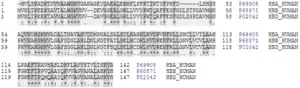 Protein alignment of human hemoglobin proteins, alpha, beta, and delta subunits respectively. The alignments were created using UniProt's alignment tool available online.