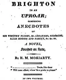 - ↑ Moriarty, H. M. (1812). Crim. con.: a novel, founded on facts. London: Printed for and sold by the authoress, at Messrs. Seaton and Smith's.