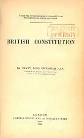 Brougham's Political Philosophy was included on the Cambridge syllabus for History and Political Philosophy, where it was considered among the major works on the topic along with Aristotle's Politics, François Guizot's Histoire de la civilization en Europe, and Henry Hallam's Constitutional History.[25]