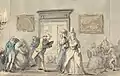 His more serious efforts were no great success, but his caricatures are as famous as those of his contemporaries Thomas Rowlandson and James Gillray, good examples being his A Long Story (1782), Country Club (1788), and Barber's Shop (1803). He was a popular character, and the friend of most of the notabilities of his day, whom he never offended by attempting political satire; his easy circumstances and social position (he was commissioned as lieutenant-colonel of the West Suffolk Militia on 26 August 1788,[4] and was appointed equerry to the Duke of York and Albany in 1787) allowed him the leisure to practise his talents.[2]