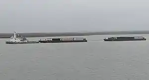 Like other pusher tugs, she has a tower, with a steering bridge, that rises high above her conventional bridge, to help navigate, when she is pushing a line of barges.[2] She displaces 783 tons, and has a draft of just one metre.[3] Her four propellers are mounted in tubes.[5] Each is powered by an 839-horsepower diesel engine.[6]