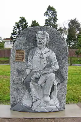 Comboyne Street in Kendall has a granitic sculpture to the poet (GPS 31°37′58″S 152°42′23″E / 31.632715°S 152.706367°E / -31.632715; 152.706367).[19]