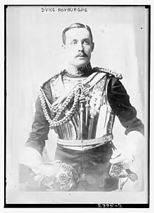 The Duke was appointed a Member of the Royal Victorian Order in February 1901.[7] He was appointed a Knight of the Order of the Thistle (KT) in the 1902 Coronation Honours list published on 26 June 1902,[8] and was invested by King Edward VII at Buckingham Palace on 8 August 1902.[9] He served as Chancellor of the Order of the Thistle from 1926 until his death.[3]