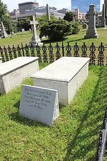 Latimer died at Philadelphia and was buried first in the Presbyterian Cemetery in Wilmington. This cemetery is now the location of the Wilmington Institute Library and his remains were then moved to the Wilmington and Brandywine Cemetery.