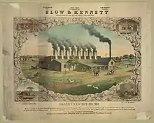 Henry Blow graduated from Saint Louis University[4] and started apprenticing in a law office, but was forced by the deaths of his parents to become a clerk in his brother-in-law Charless' business, selling paint and oil.[5] Peter Blow had left his estate to his two unmarried daughters and Henry's younger brothers, Taylor and William. Henry was only fifteen when his father died, but that was old enough to be seen as a man able to survive on his own. Henry's married sister, Charlotte Taylor Blow, also did not receive an inheritance. She married Joseph Charless, Jr. in 1831. Charless' father, Joseph Charless, had founded the first newspaper west of the Mississippi. The Charless family helped Henry after the death of his father and Henry began working as a clerk at their wholesale drug and paint company. When Joseph Charles Sr. retired in 1836, Henry was made a partner in the business. In 1838, the business was renamed Charless, Blow, and Company. Only a few years later, in 1844, the partnership was dissolved. Charless retained ownership of the drugstore and Blow kept the manufacturing firm, which was later known as Collier White Lead and Oil Company. The Collier Company was one of the largest factories in St. Louis.[3]
