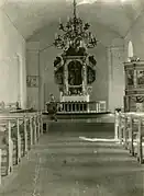 The earliest existing historical records of the church date back to the year 1432, but the church was originally constructed during the second half of the 1100s. The church has a rectangular nave, a tower to the west, and a narrower choir with a semicircular apse. The choir and apse have a lower roof line than the nave. Research on the building has shown that the choir part is the oldest part of the existing building with the apse and nave built a little later. Originally, the current choir was the stone nave that was attached to a wooden building. The wood building was later torn down and the stone building was expanded. Over the years, the church fell into disrepair. During the early 1400s, the western wall of the church was taken down and the stone nave was shortened by about 4 metres (13 ft) and then a new wall was built. In 1879, the church was enlarged by doubling the length the nave (adding about 10 metres (33 ft) to the nave) and then a new west tower was added on the end of the new nave. In the 1960s, the church was thoroughly renovated by the architect John Egil Tverdahl.[3][4]