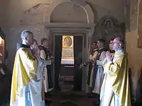 Many of the Heralds of the Gospel members receive the Sacrament of Holy Orders through the Society of the Apostolic Life of Pontifical Right Virgo Flos Carmeli., which enjoys numerous vocations.[8]