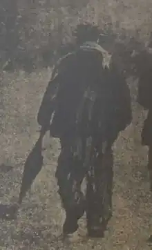 Jackson's attire was considered eccentric.[2] Oman described him as wearing "an old grey jacket, a very baggy pair of flannel trousers, and a woollen scarf or comforter twisted round his neck instead of a collar. His headgear varied between a straw hat and a shapeless felt".[3] In later years Jackson often wore an old bowler hat.[2] Counsell recalled Jackson's shirt being worn open at the throat, exposing a hairy chest, and that he wore large white socks loosely over oversized shoes.[4]