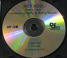 "Here I Am" is the third single from Rick Ross's second album Trilla. It features Nelly and Avery Storm. This song, produced by Drumma Boy, contains an interpolation of Stevie Wonder's "Lately". Video appearances made are DJ Khaled, Birdman, Pitbull, Dre, Felicia Pearson, Ace Hood and others. After the song ends, the video cuts to Ross's other song, "Maybach Music". The single peaked at number 41 on the US Billboard Hot 100 chart.[1] Originally, the third single was going to be "Luxury Tax", but it was changed to "Here I Am". The song was ranked as #50 by Vibe in 'The Best Songs Of '08'.[2]