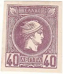 The first type of the Greek stamp is named "large Hermes head" in order to differentiate it from the following one, issued in 1886, and named "small Hermes head".[13]