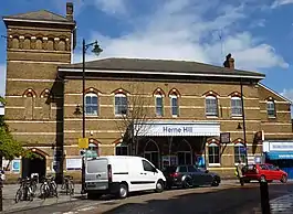 Herne Hill railway station sits at the bottom of the hill that gives the area its name and is close to Brockwell Park.[3] The section of Railton Road outside the station is mixed usage for pedestrians and vehicles.[4]