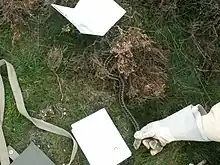Tree frogs can be caught and photographed by using PVC pipes that are capped on the bottom and hung vertically in a tree near water.[10] If aquatic species are the target species the use of an aquatic funnel trap can be used.[10] Drift fences have been used with a high success rate for capturing snakes. The use of drift fences along with a pit-fall or funnel box trap has yielded high success. The length of the fence is variable, but the longer the fence results in a higher success rate. The fence is set with traps in the middle and/or the ends. Snakes encounter the fence and are directed or lead to the trap. Care must be taken in providing enough cover so the species do not die of heat exhaustion. Identifying all the species in the trap is recommended so an accidental envenomation is avoided. Pitfall traps are small buckets that are placed in holes dugout next to the drift fence.[10]