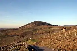 The Hessische Bergstraße (German pronunciation: [ˈhɛsɪʃə ˈbɛʁk.ʃtʁaːsə]; lit. 'Hessian Mountain Road') is a defined region (Anbaugebiet) for wine in Germany located in the state of Hesse among the northern and western slopes of the Odenwald mountain chain.[1] With only 467 hectares (1,150 acres) of vineyards it is the smallest of the 13 German quality wine regions. At 21% red grape varieties and 79% white varieties, it is planted with primarily Riesling (40% as of 2019), Pinot gris (12%) and Spätburgunder (Pinot Noir, 11%).[2] Hessische Bergstraße is divided into two districts (Bereiche) – Umstadt and Starkenburg – three collective vineyard sites and 24 individual vineyard sites.[3]