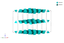 The R block has a chemical formula of MeLMeS6O112-. MeL are larger metal cations, for example, alkaline earth metals (Ba,[4] Sr,[5]) rare earth metals,[5] Pb,[6] etc. The point group symmetry of the R block is . The large metal cations are located in the middle layer of the three hexagonally packed layers. This block is also composed of face-sharing MeS-centered octahedra and MeS-centered trigonal bipyramids.