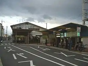 ![]() Station building behind bus terminal | |