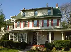 The farmhouse is a two-and-one-half-story, modified center hall, Georgian-style house, which features a broad shed roof dormer.[2]