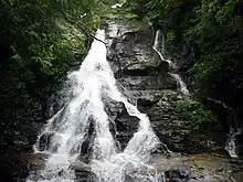 High Shoals Creek Falls located on High Shoals Creek in the High Shoals Scenic Area of the Chattahoochee National Forest in Towns County, Georgia and features two observation decks.