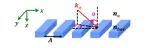 Fully rigorous electromagnetic solutions exist for gratings, which tends to involve heavy mathematical formulism. A simple analytical formulism to explain the various properties of high contrast grating has been developed.[13][14][15] A computational program based on this analytical solution has also been developed to solve the electromagnetic properties of high contrast grating, named High Contrast Grating Solver.[16] The following provides a brief overview of the operation principle of high contrast grating.