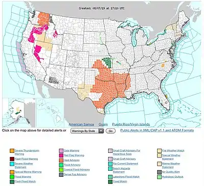 - 1 2 "Emergency Alert System (EAS) Event Codes/NWR Specific Area Message Encoding (NWR-SAME) Codes". National Weather Service. National Oceanic and Atmospheric Administration. October 11, 2005. Retrieved August 13, 2012.