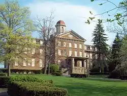 Designed by noted Philadelphia architect Samuel Sloan (1815-1884), Highland Hall was built sometime around 1865. It is now a four-story, "L"-shaped, stone building that features a mansard roof, which was a characteristic of the Second Empire style.[2] Highland Hall was added to the National Register of Historic Places in 1978.[1]
