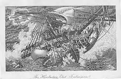 Hindostan left London just after the turn of the new year. Unfortunately a severe gale caught her just off Margate on 11 January 1803 and wrecked her on the Wedge Sand. She had about 120 persons aboard, of whom about 20 or 25 died.[7][8] A more precise accounting states that 24 people died, including three midshipmen.[3]
