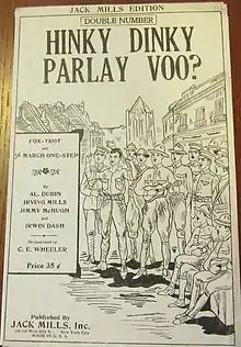 "Hinky Dinky Parlay Voo?" is a song composed by Al Dubin, Irving Mills, Jimmy McHugh and Irwin Dash in 1924 and published by Jack Mills, Inc. It is a sequel to the popular World War I song, "Mademoiselle from Armentières," having the same refrain.[1][2]
