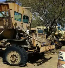 The Hippo is a South African armoured personnel carrier. Specially designed to be mine resistant, it can carry ten infantrymen and a crew of two.[3] The vehicle's remote-operated turret mounts dual 7.62mm machine guns, but like other improvised fighting vehicles, it is only lightly protected against ballistic threats.[3]
