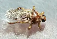 Hippobosca longipennis (Diptera: Hippoboscidae), the dog fly, louse fly, or blind fly, is a blood-feeding parasite mostly infesting carnivores.[1] The species name "longipennis" means "long wings".[2] Its bites can be painful and result in skin irritation, it is an intermediate host for the canine and hyaenid filarial parasite Dipetalonema dracunculoides, "and it may also be a biological or mechanical vector for other pathogens".[1][3]